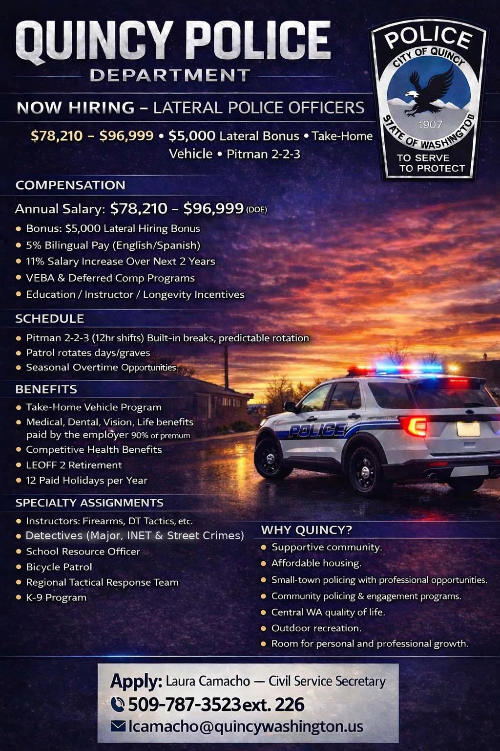 Quincy PD received statewide recognition as WSIN 2025 Agency of the Year (Washington Region II).