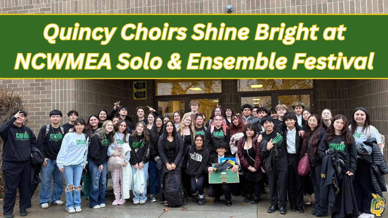 Representing over half of the Quincy Choir program, our students not only demonstrated impressive musical talent — they set a new record for participation in this regional event. Their performances reflect not only individual skill, but also the strength and support of the entire Quincy music community — from choir teachers to accompanists, families, and friends who cheer them on.