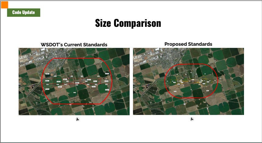 One of the presentation slides said it plainly: the proposed code update would “allow for greater flexibility than WSDOT standards.” That line may have been the single most important argument staff made all night.