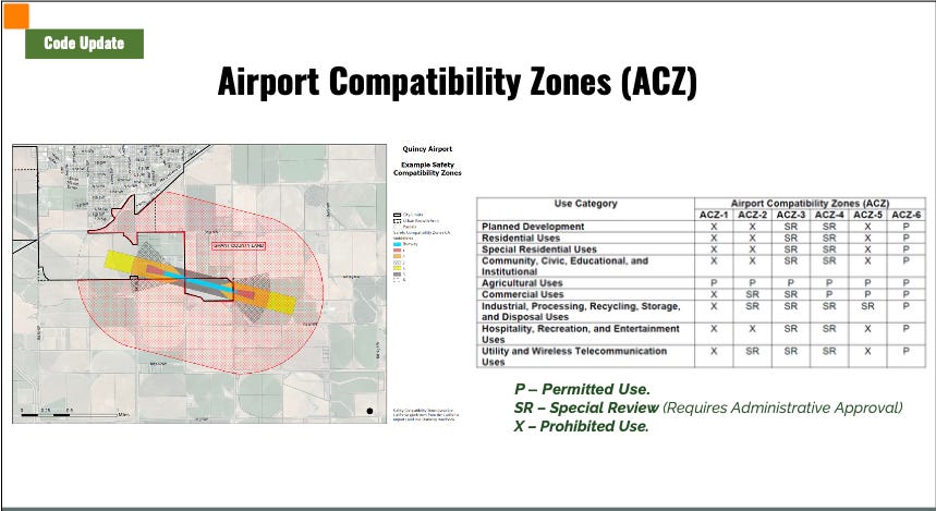 This was no longer just about maps, acronyms, and development regulations. It became a question a lot of people in Quincy can understand immediately: if the city changes the rules around the airport, what can still be built there, how hard will it be to build, and who gets affected next?